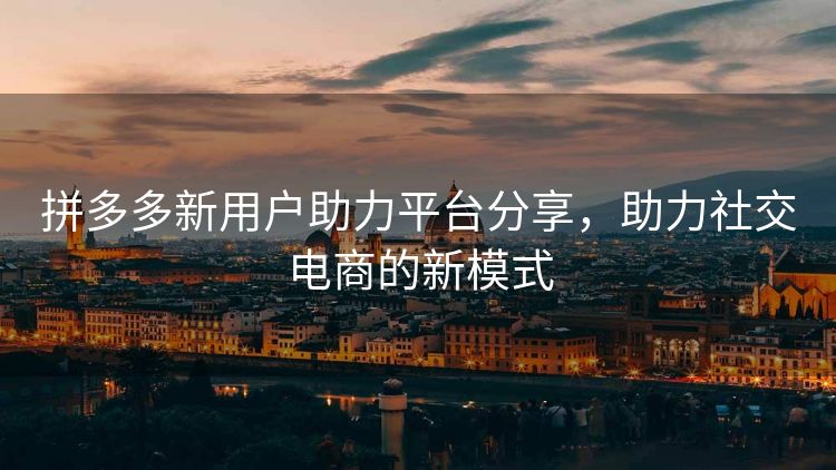 随着互联网的普及和社交媒体的快速发展,社交电商作为一种新兴业态迅速崛起,拼多多作为其中的佼佼者,以其独特的社交电商模式吸引了众多消费者,新用户助力平台是拼多多的一项重要功能,不仅能帮助新用户体验到拼多多的购物乐趣,还能为老用户带来一定的优惠和福利,本文将详细介绍拼多多新用户助力平台的特点、优势以及如何有效分享,探讨其背后的商业模式和社会价值。
