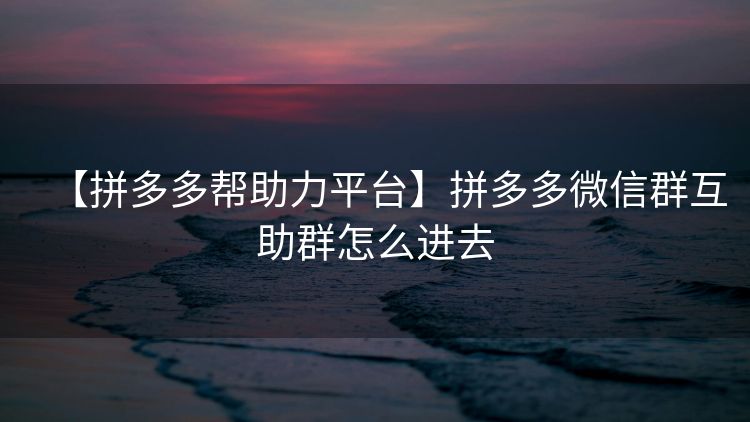 【拼多多帮助力平台】拼多多微信群互助群怎么进去
