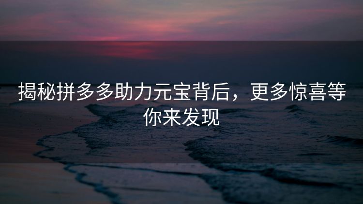 拼多多助力元宝后面还有更多惊喜等你来发现,作为消费者,你可以充分发挥自己的社交资源,邀请好友助力,积累更多的元宝,兑换更多的奖励,在购物过程中,也要注意保障自己的权益,选择信誉良好的商家购买商品,遇到问题及时寻求平台的帮助。