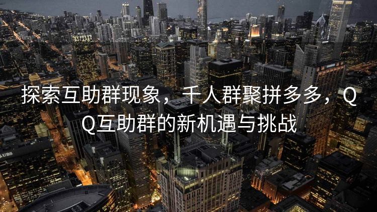 随着互联网的普及和社交媒体的飞速发展,各种互助群如雨后春笋般涌现,拼多多QQ互助群以其独特的魅力和巨大的潜力,吸引了成千上万的用户参与其中,本文将围绕“千个人拼多多QQ互助群”这一主题展开,探讨互助群现象的背后原因、存在的机遇与挑战,以及可能的发展方向。