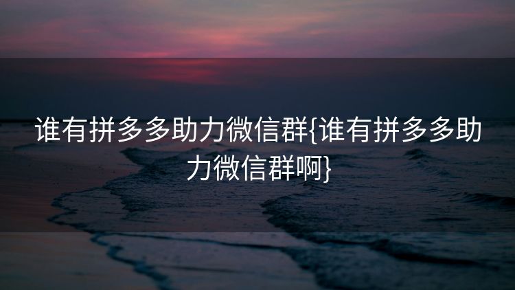随着互联网社交的日益繁荣,各种微信群也应运而生,其中不乏一种特殊群体——拼多多助力微信群,这些群组旨在帮助彼此在拼多多平台上助力砍价,实现购物优惠,究竟谁有拼多多助力微信群?如何参与?本文将为您一一揭晓。