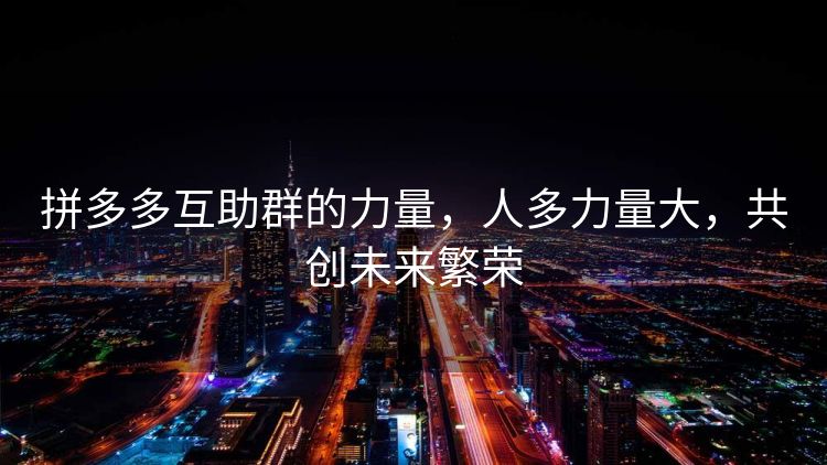 拼多多互助群的力量是巨大的,在这个时代浪潮下,我们应该充分利用这种力量,共同创造更加繁荣的未来,通过集结力量,我们可以争取更多的优惠和福利,推动消费市场的增长;助力企业的发展壮大;促进社会的和谐与进步,让我们携手共进,以人多力量大的精神,共同迎接2025年的到来,共创更加美好的未来!