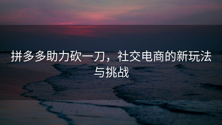拼多多助力砍一刀,社交电商的新玩法与挑战