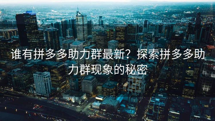 谁有拼多多助力群最新?探索拼多多助力群现象的秘密