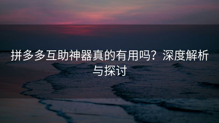 拼多多互助神器真的有用吗?深度解析与探讨
