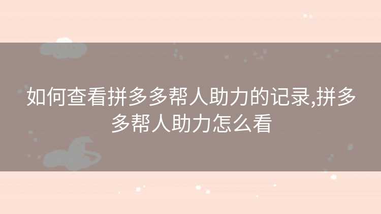 如何查看拼多多帮人助力的记录,拼多多帮人助力怎么看