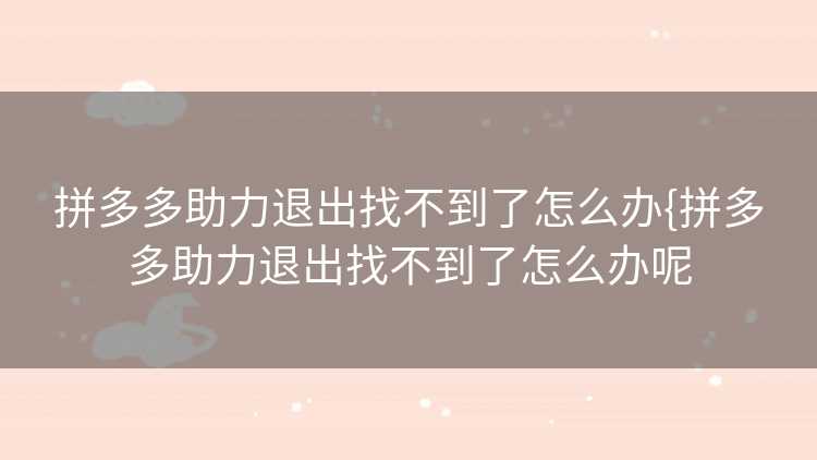 拼多多助力退出找不到了怎么办{拼多多助力退出找不到了怎么办呢