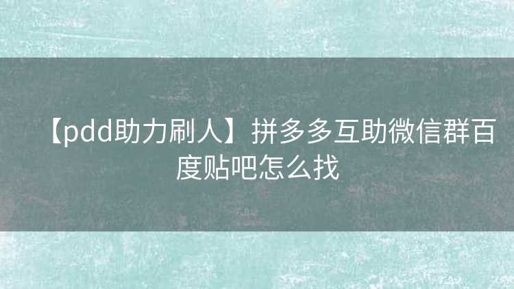 【pdd助力刷人】拼多多互助微信群百度贴吧怎么找