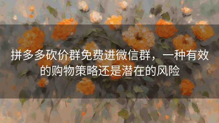 拼多多砍价群免费进微信群,一种有效的购物策略还是潜在的风险