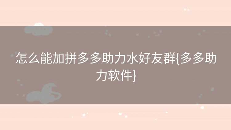 怎么能加拼多多助力水好友群{多多助力软件}
